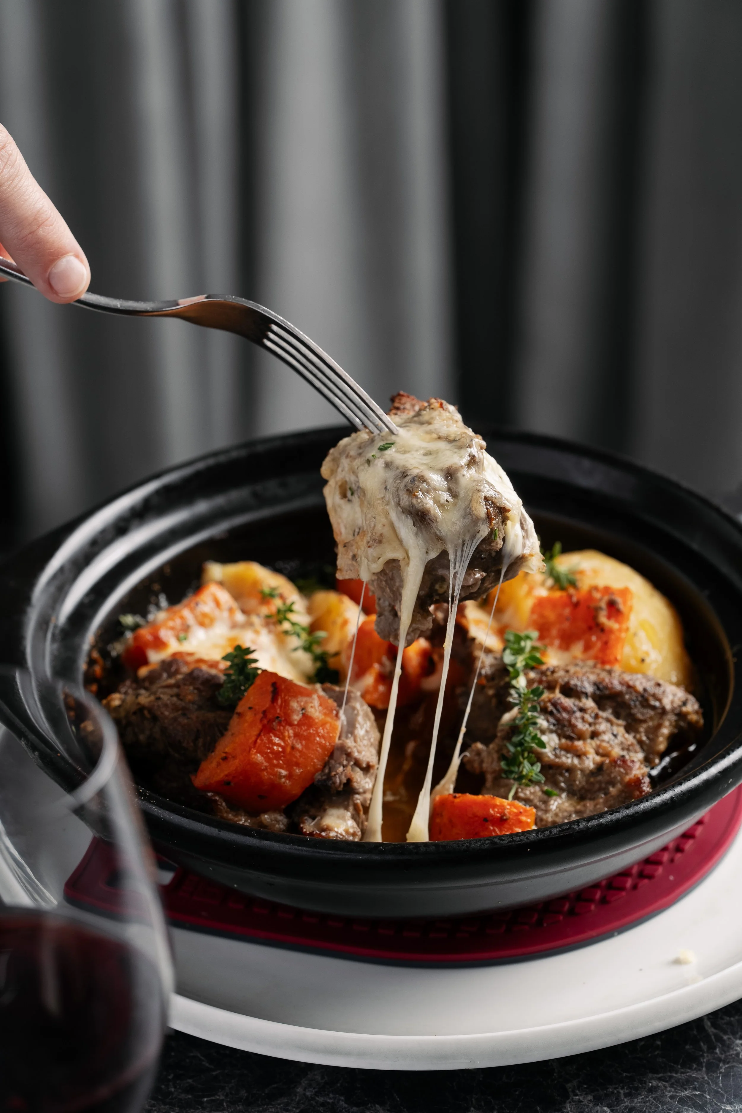 Wagyu lamb, pasta, béchamel, tomato, Greek cheese, crumb